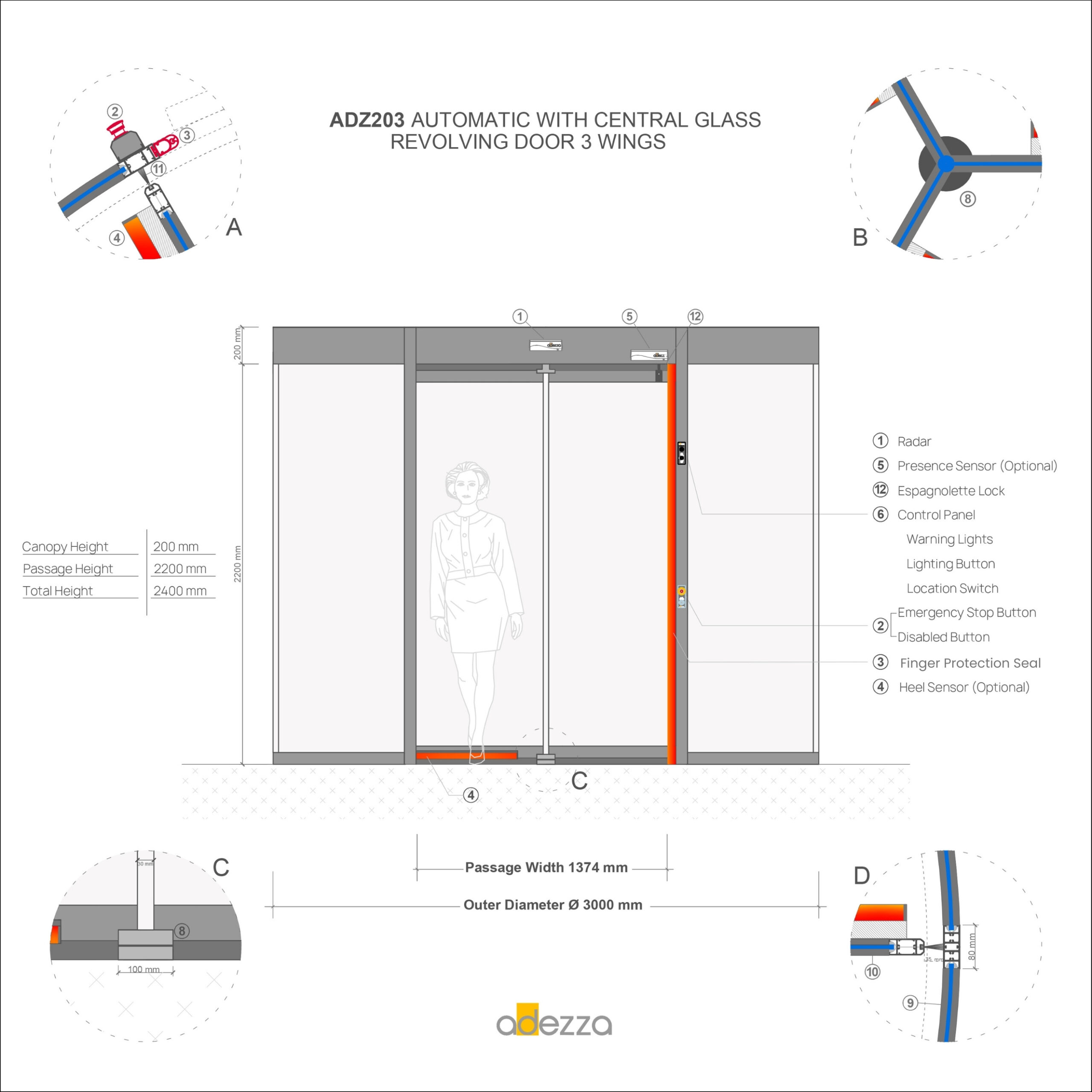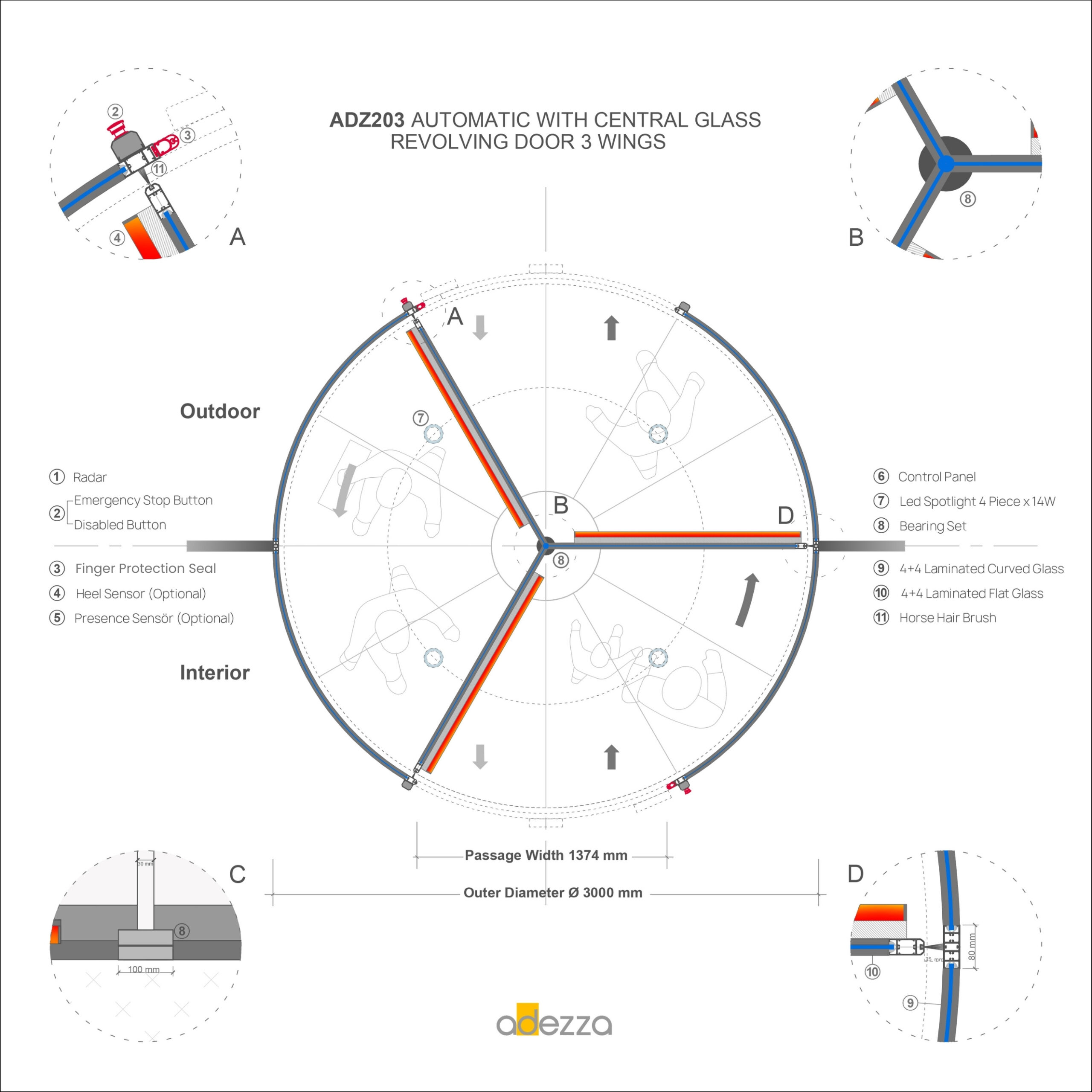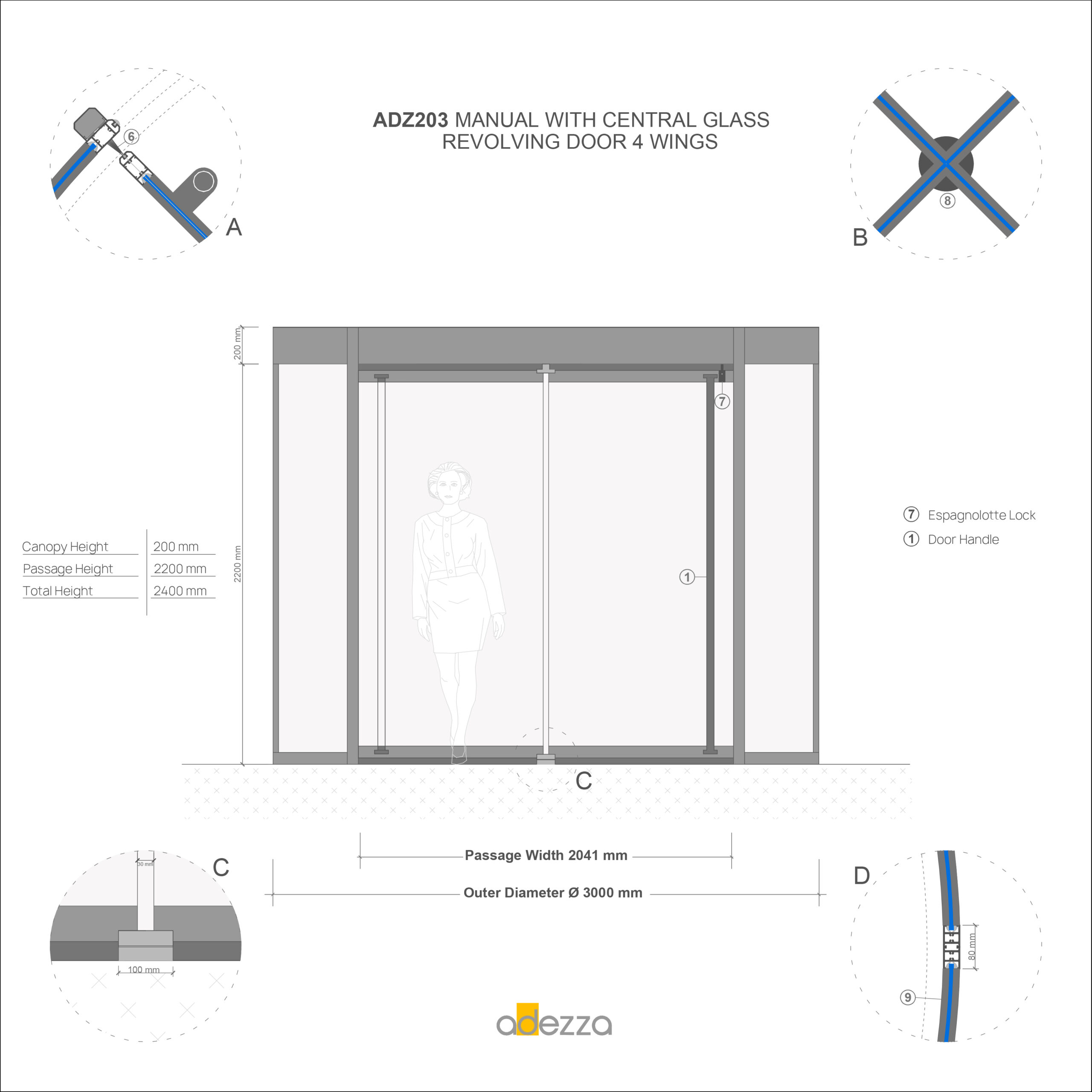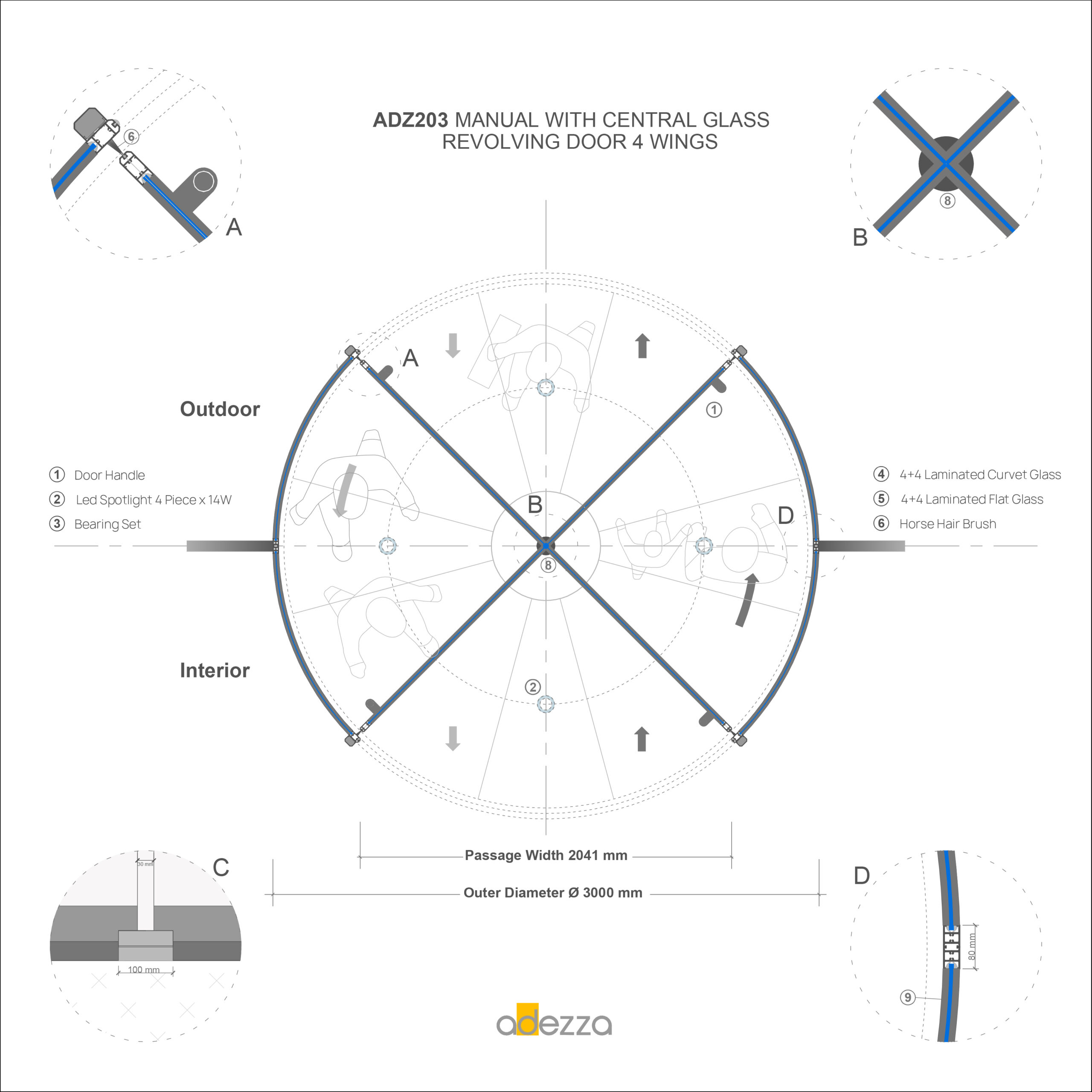 Adezza » Automatic and Manual Revolving Doors » ADZ203 Glass-Centered Revolving Doors