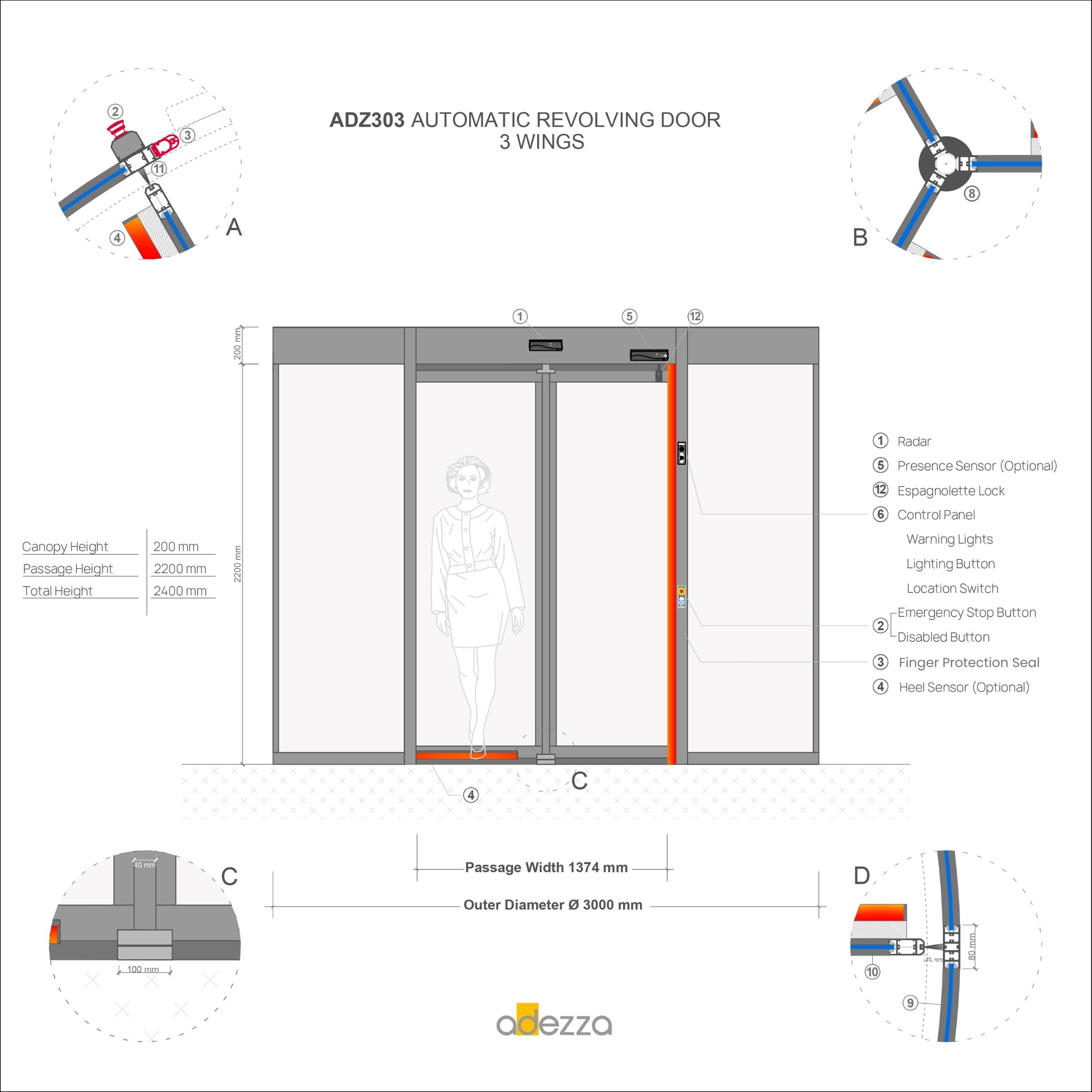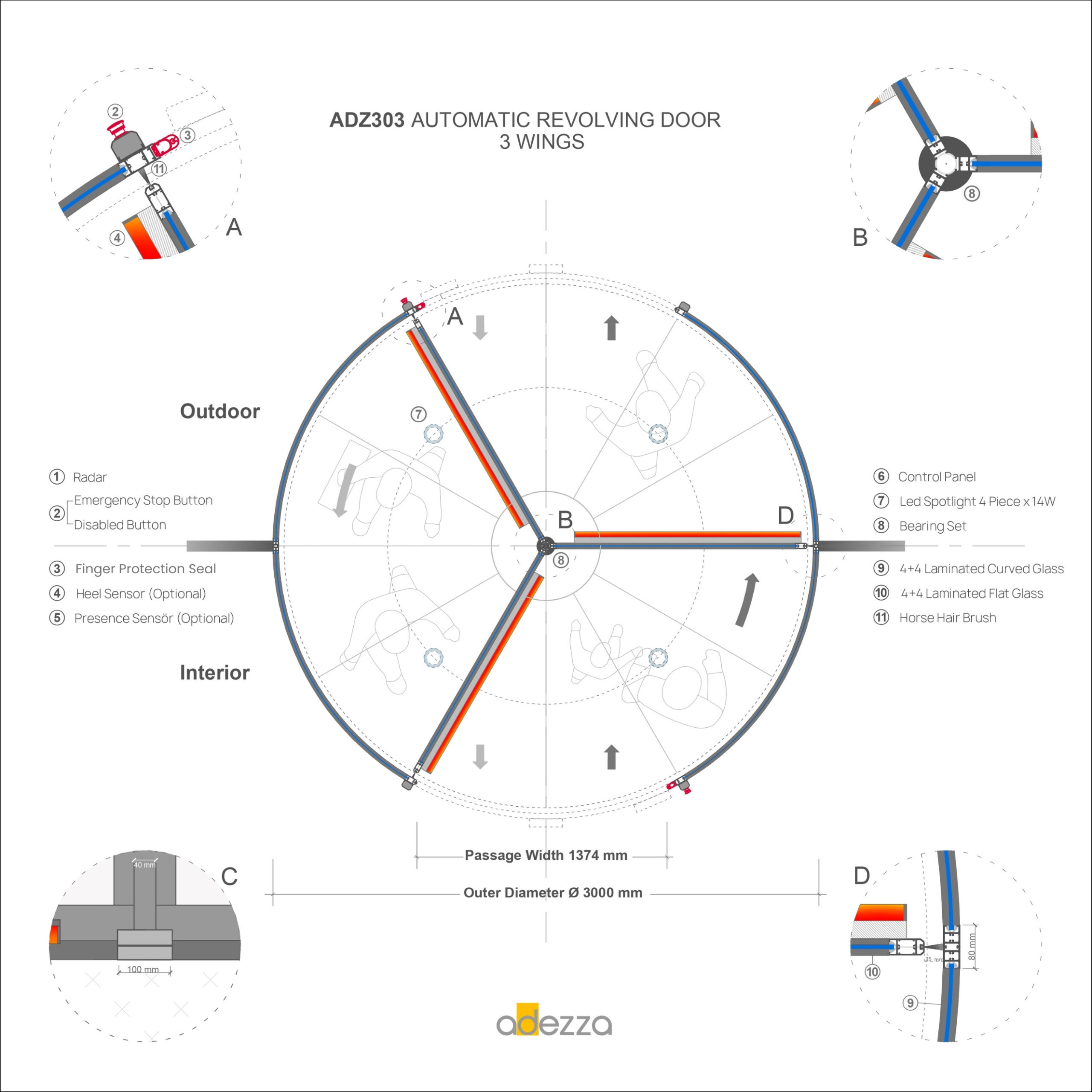 Adezza » Automatic and Manual Revolving Doors » ADZ303 Automatic Revolving Doors