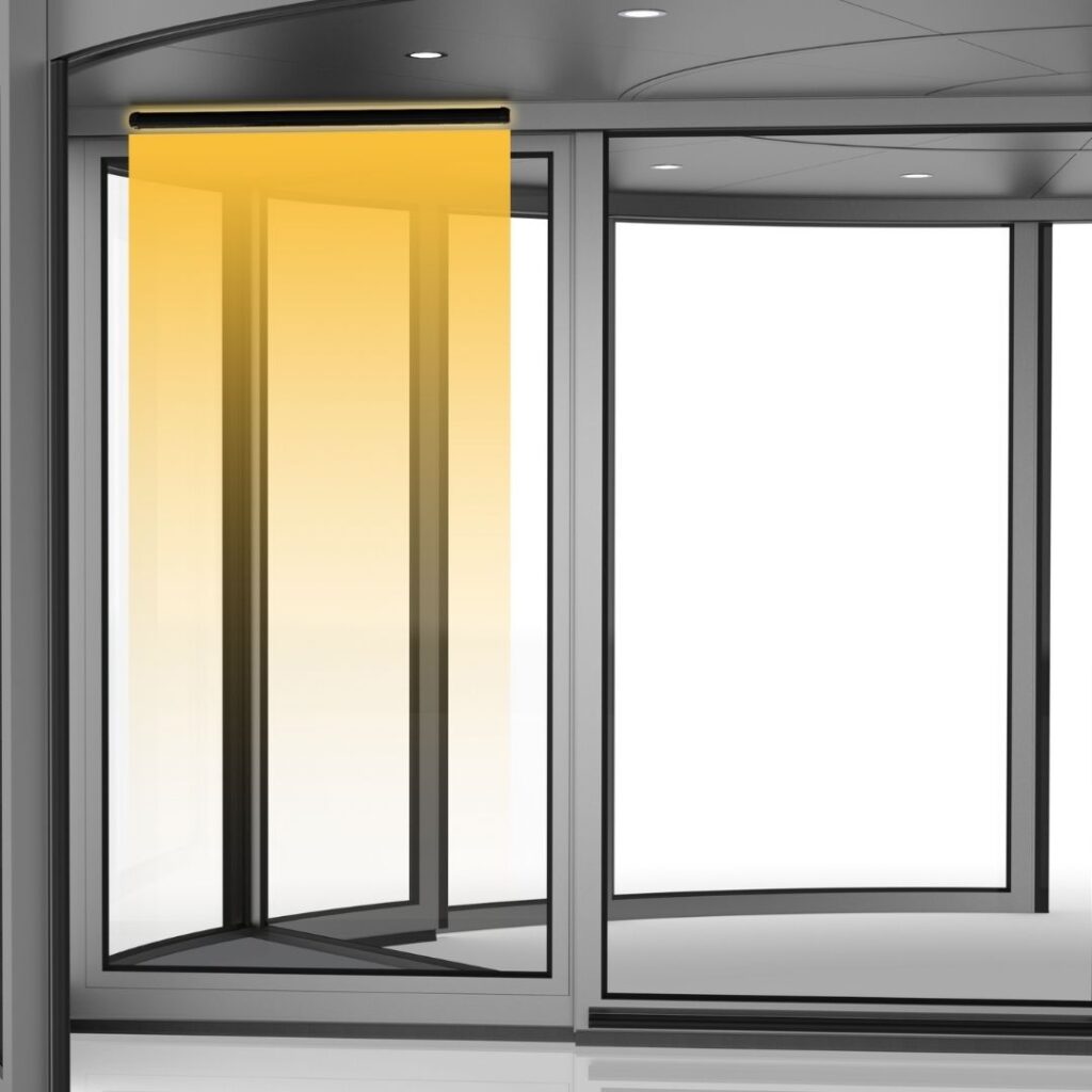 Detects people or objects located between the rotating wing and the fixed panel, stopping the door movement to ensure safety.