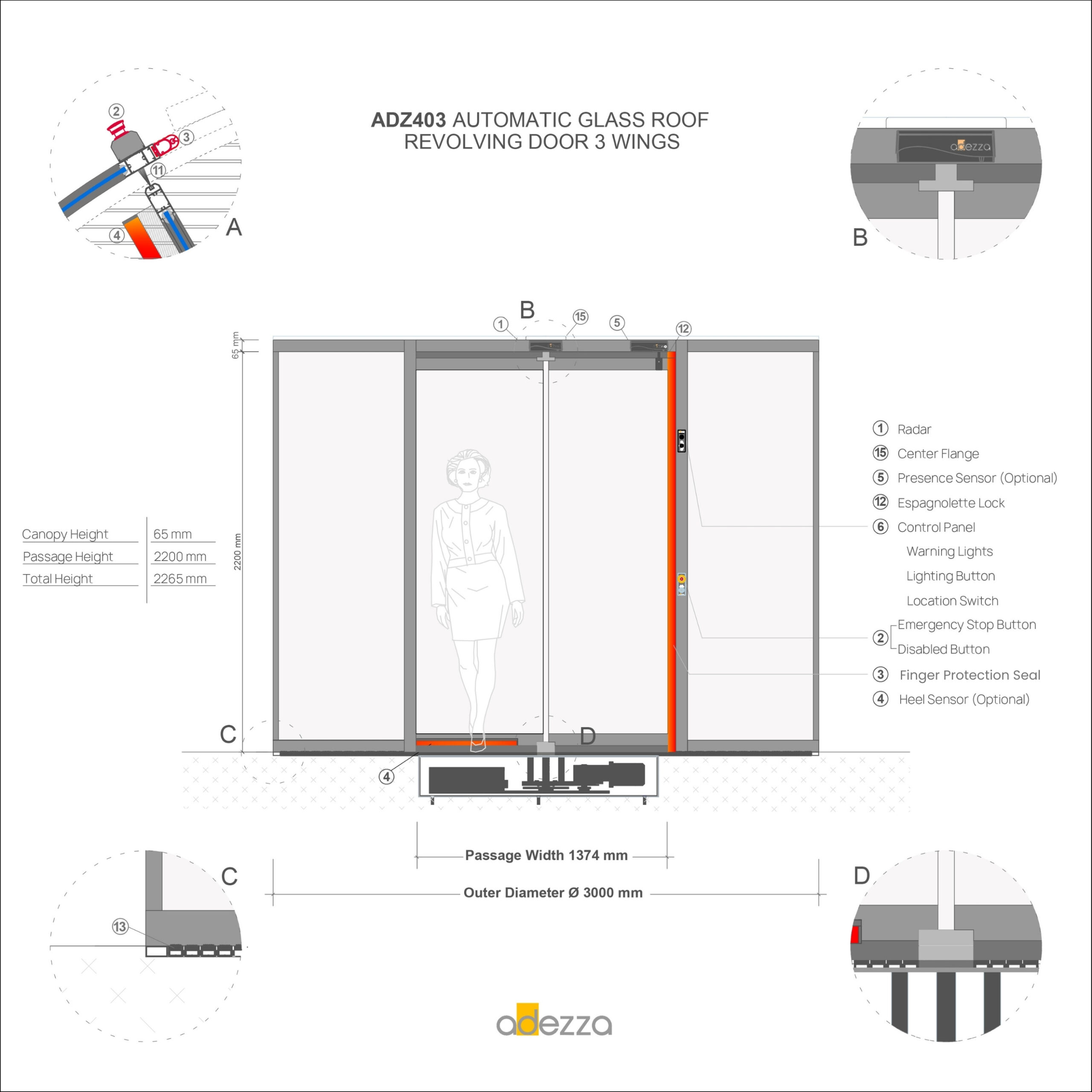| Security | Radar | 3 Wings Ø 1800 mm – Ø 3600 mm 4 Wings Ø 1800 mm – Ø 2600 mm One unit at entrance and exit | – |