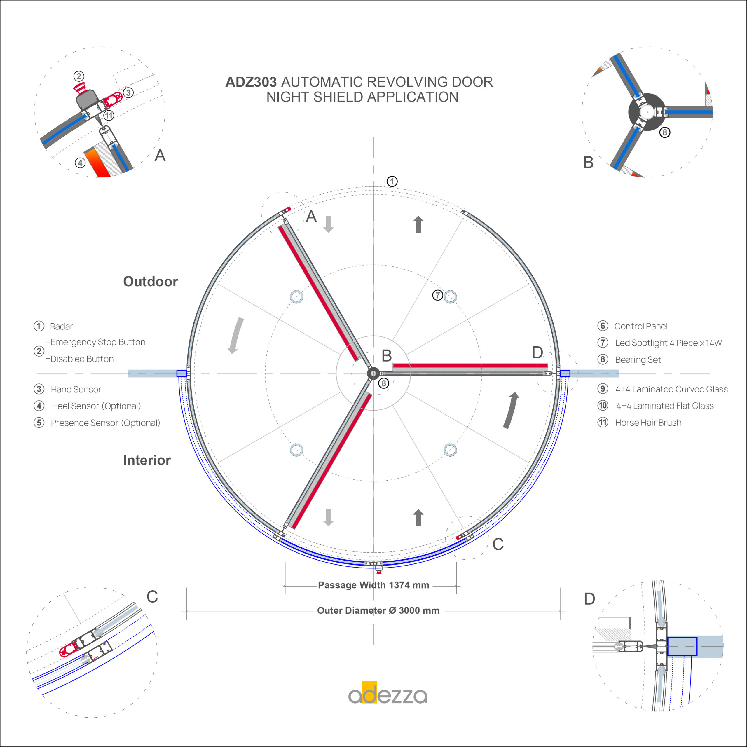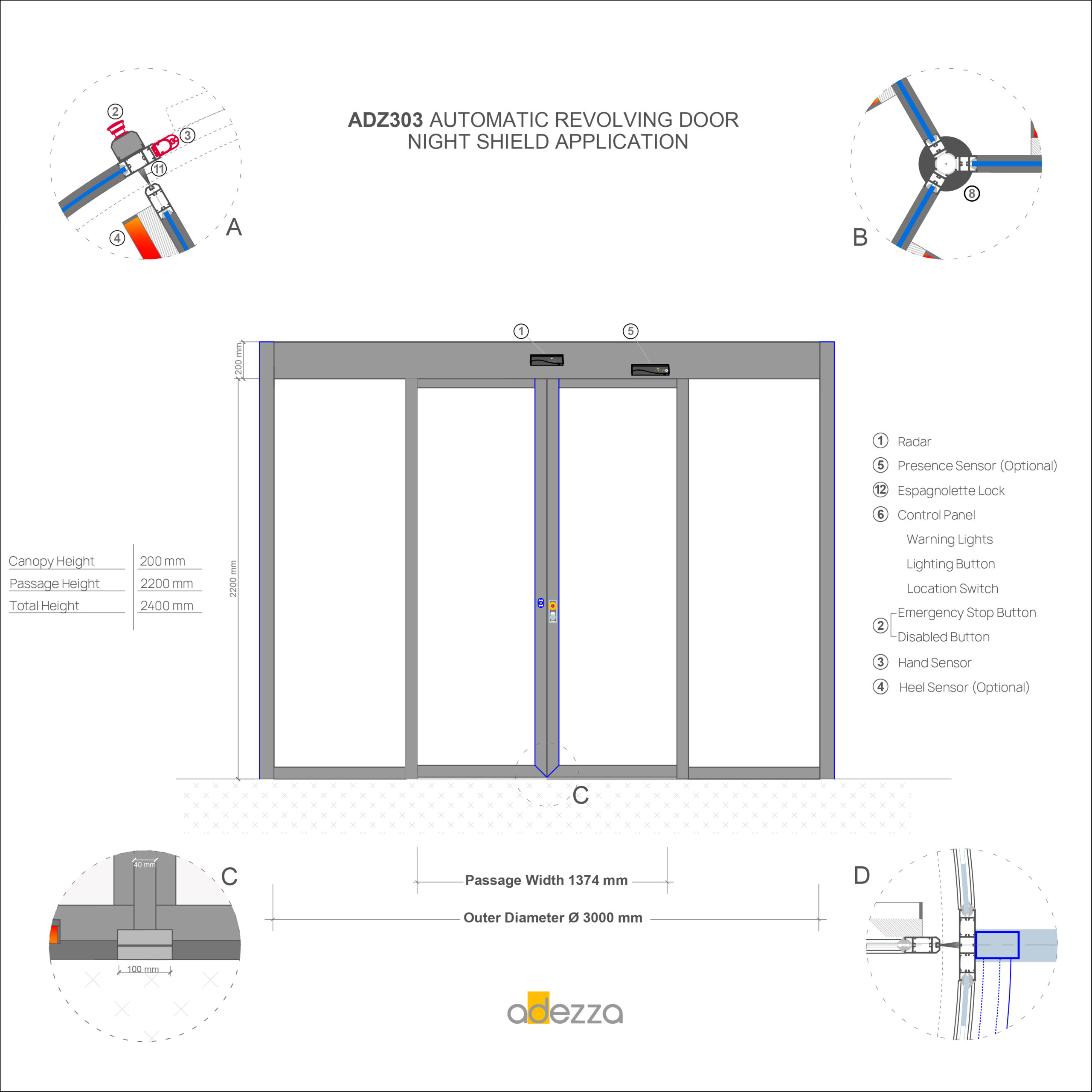 While the Night Shield is active, the revolving door is completely closed to pedestrian access.