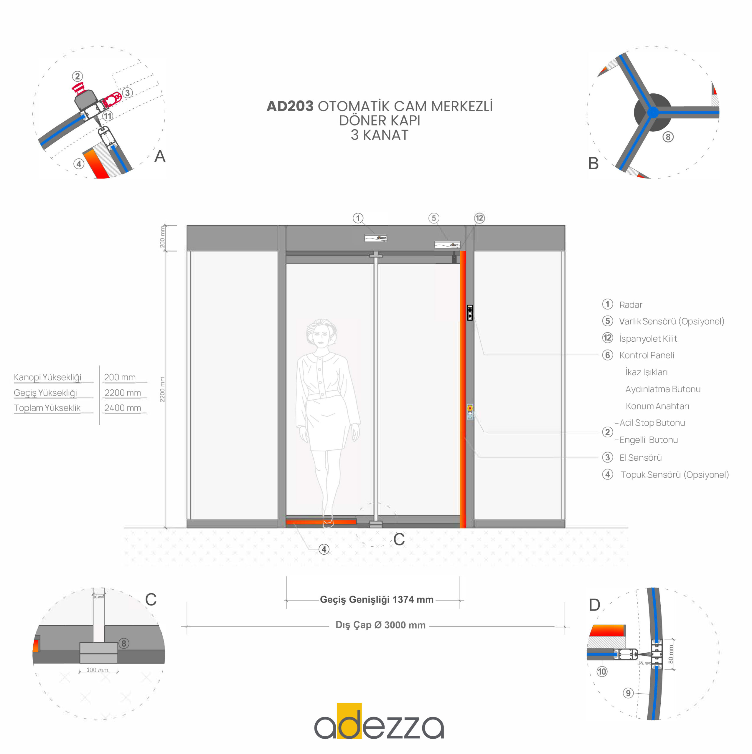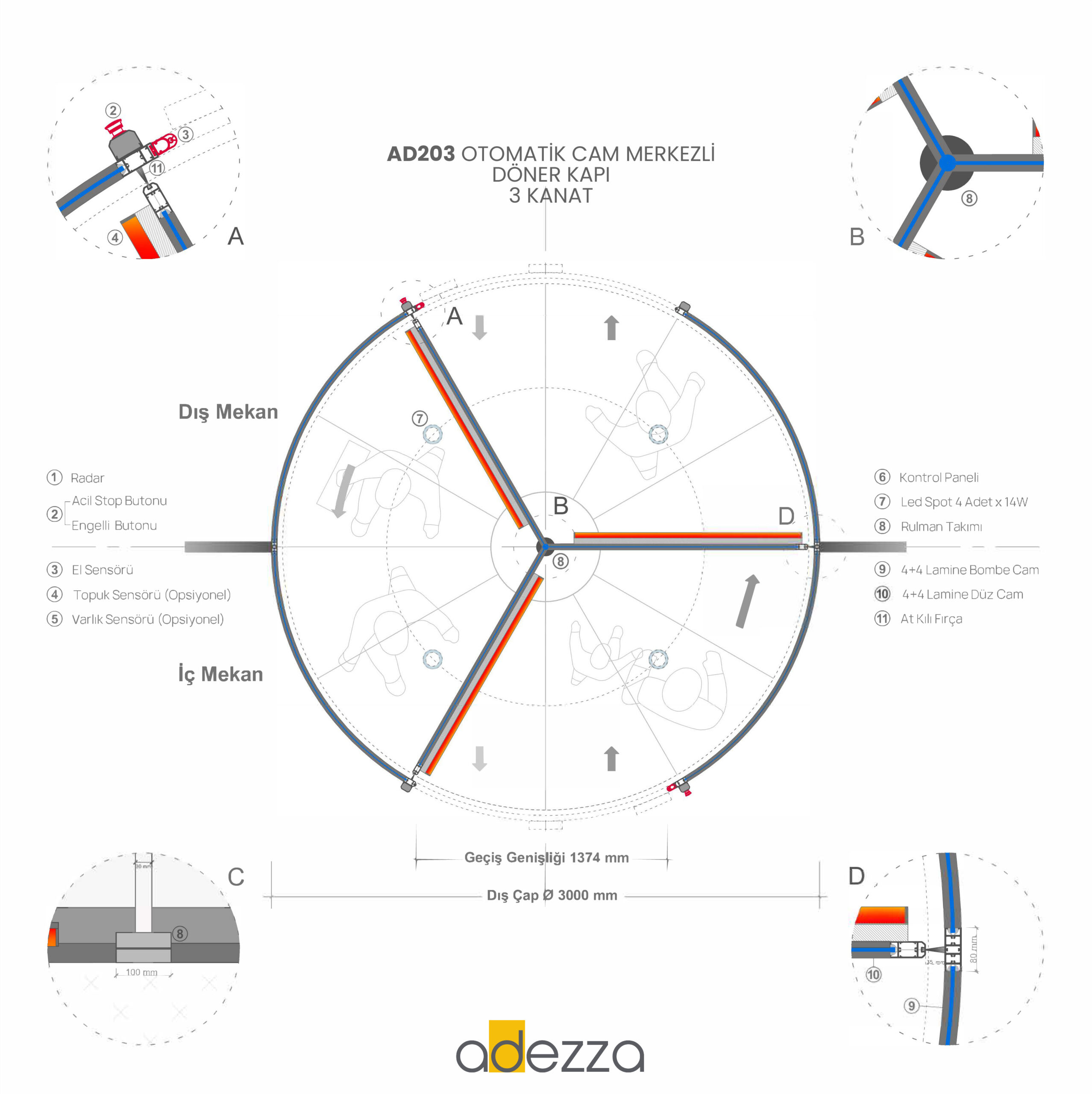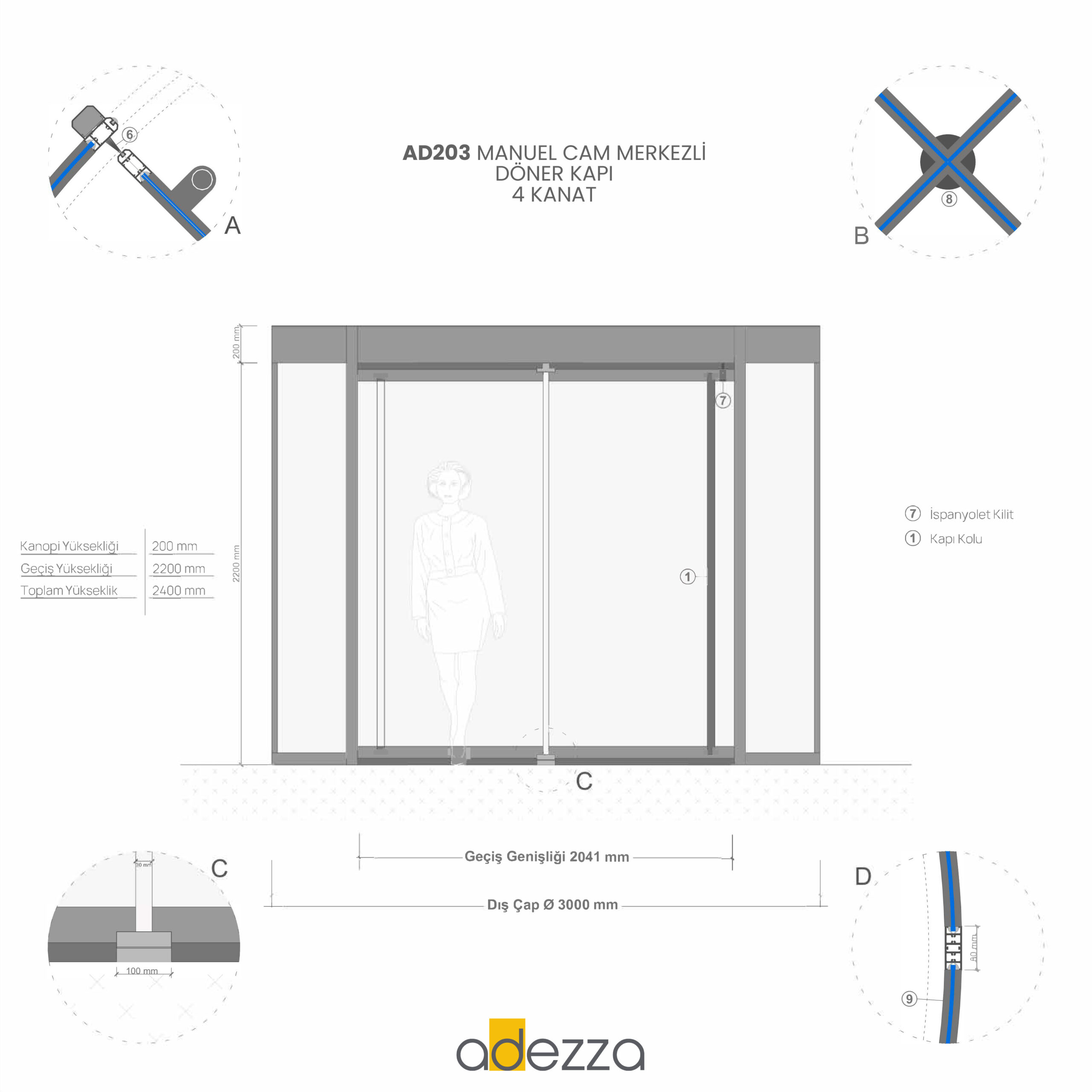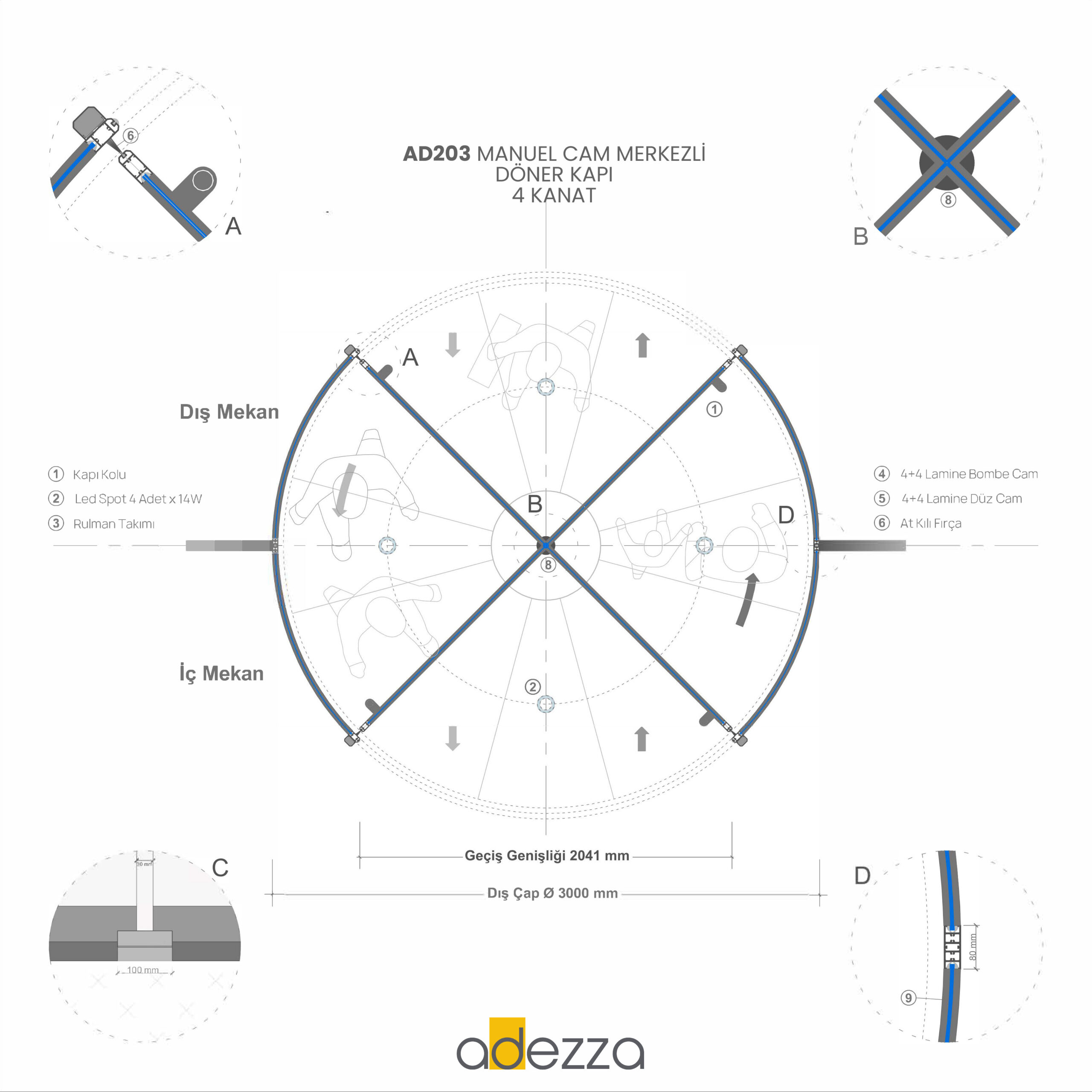 Adezza » Otomatik & Manuel Döner Kapılar » ADZ203 Cam Merkezli Döner Kapılar
