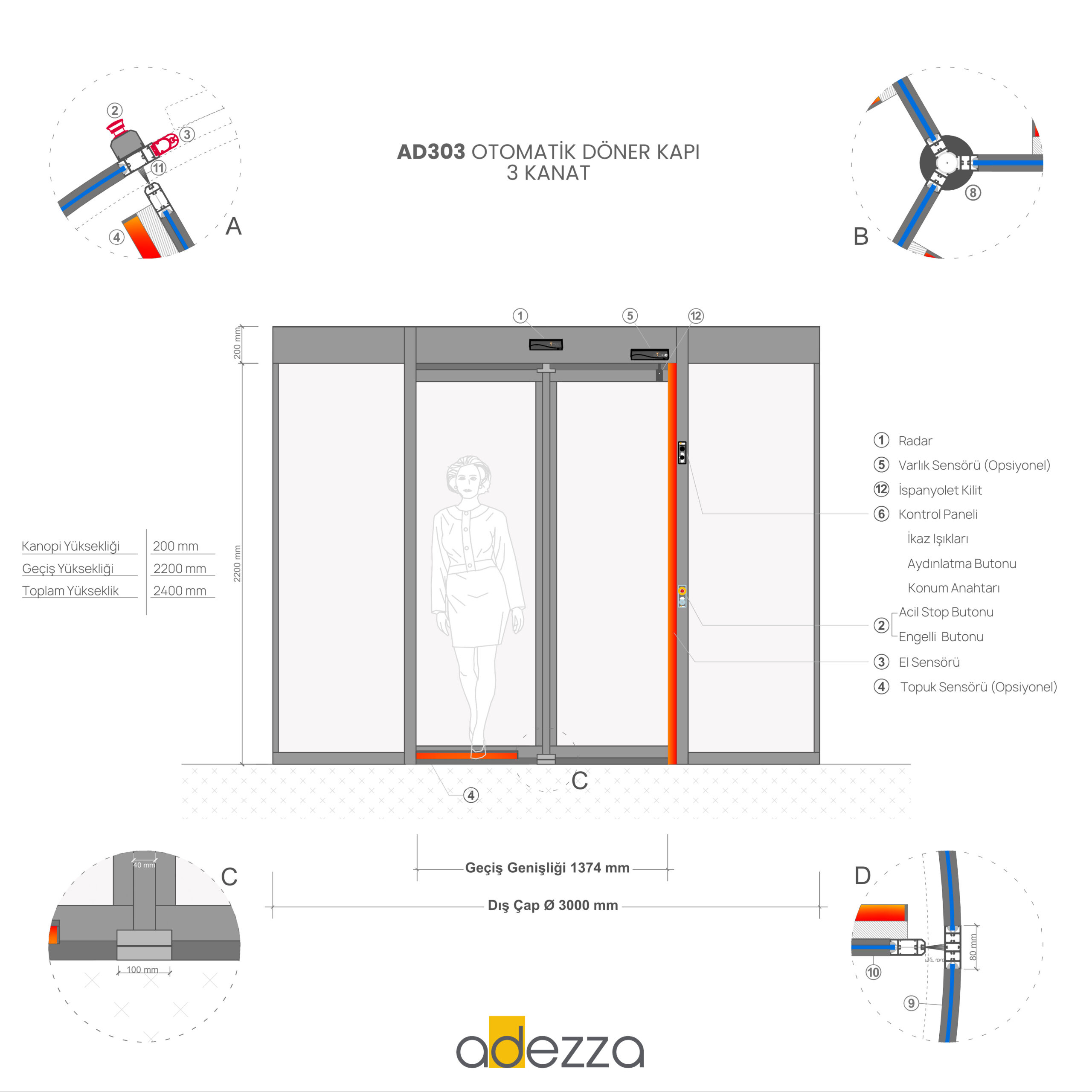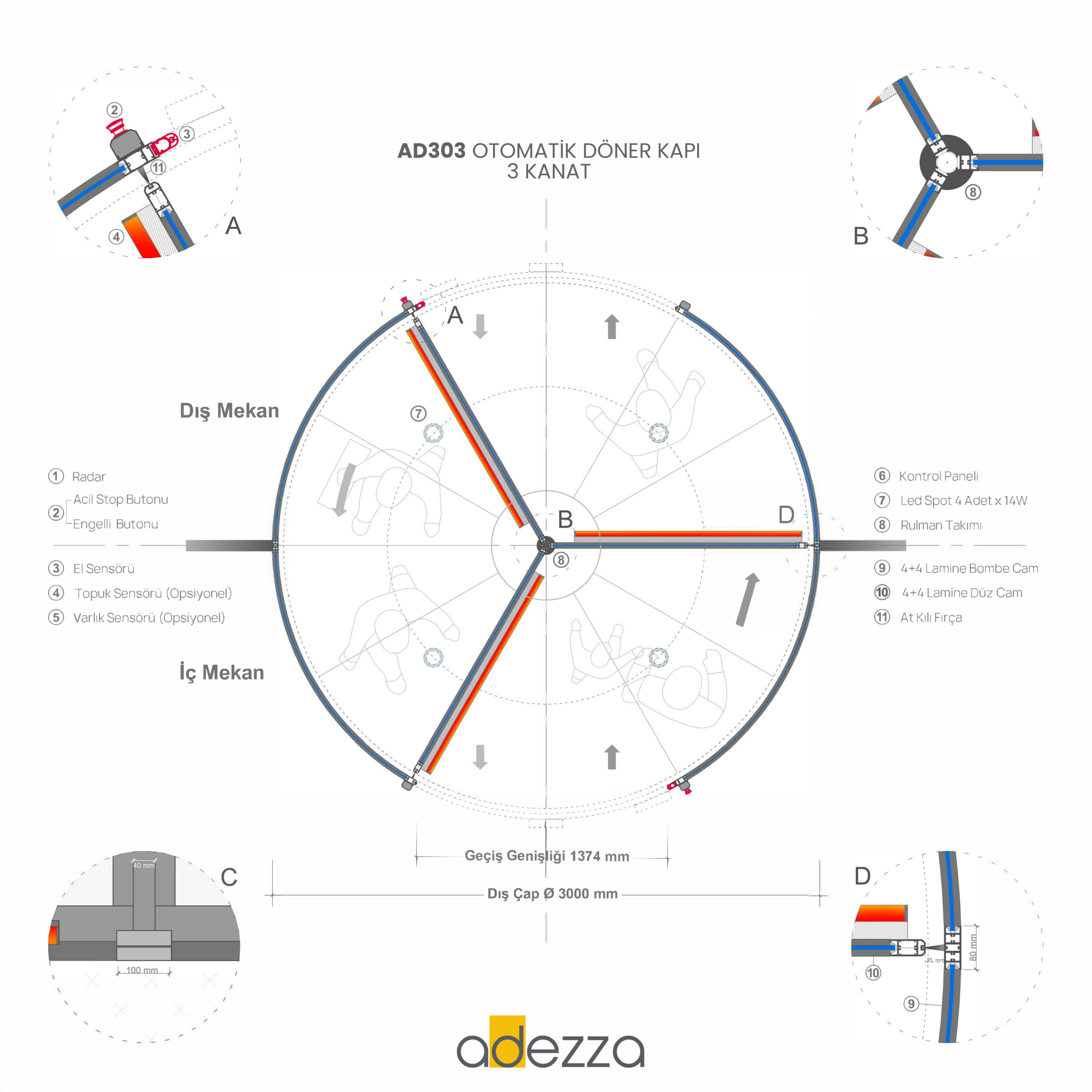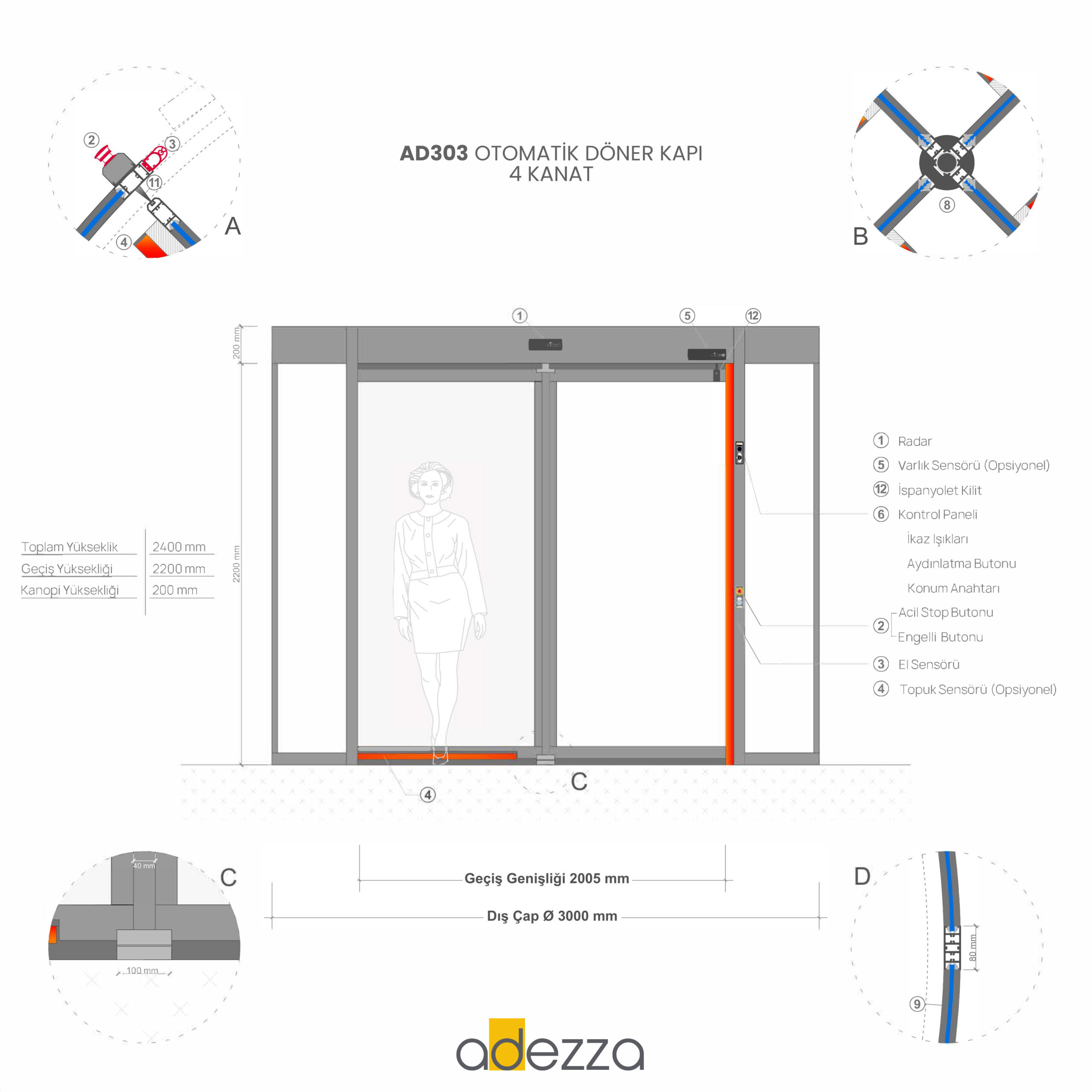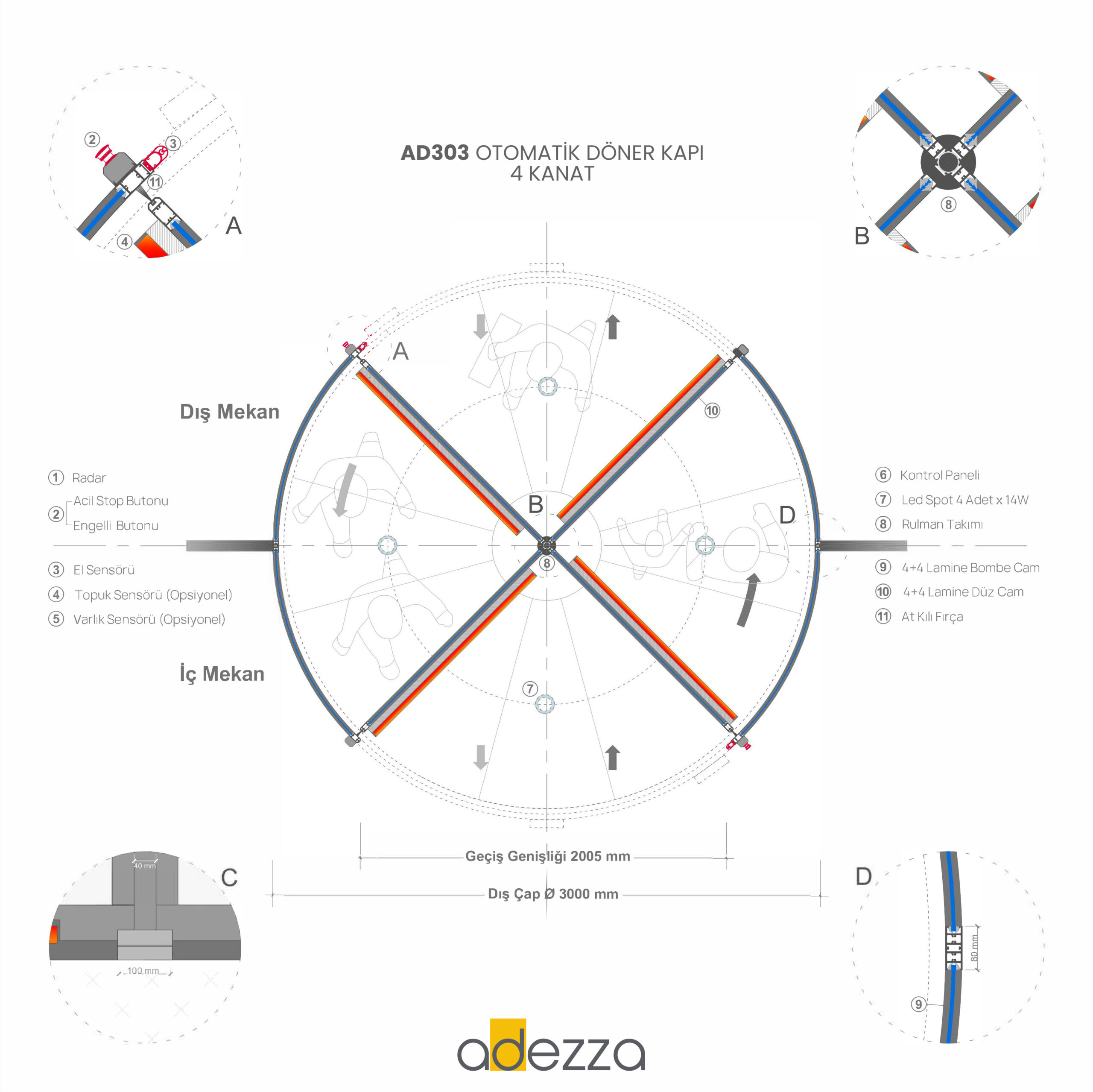 Adezza » Otomatik & Manuel Döner Kapılar » ADZ303 Otomatik Döner Kapılar